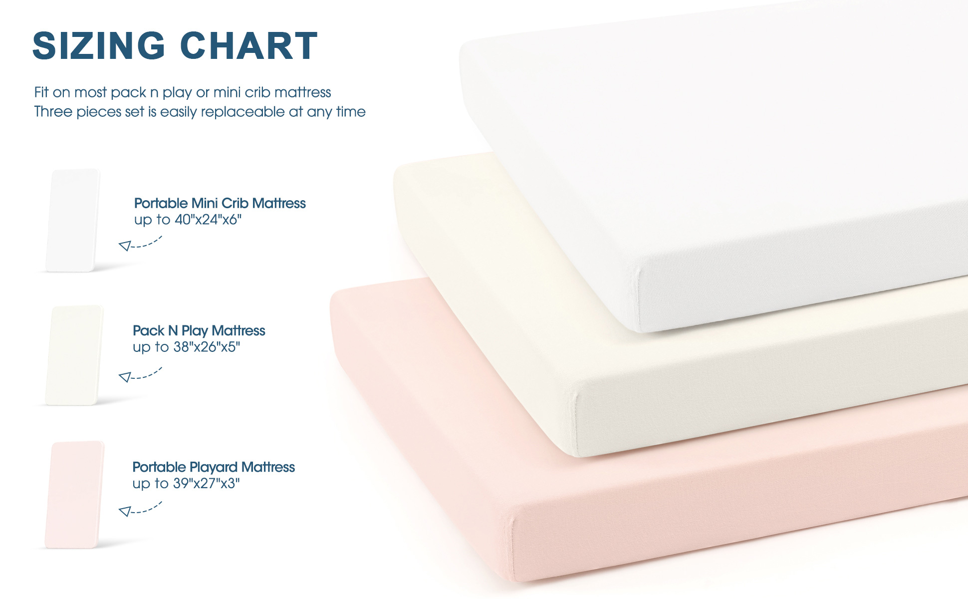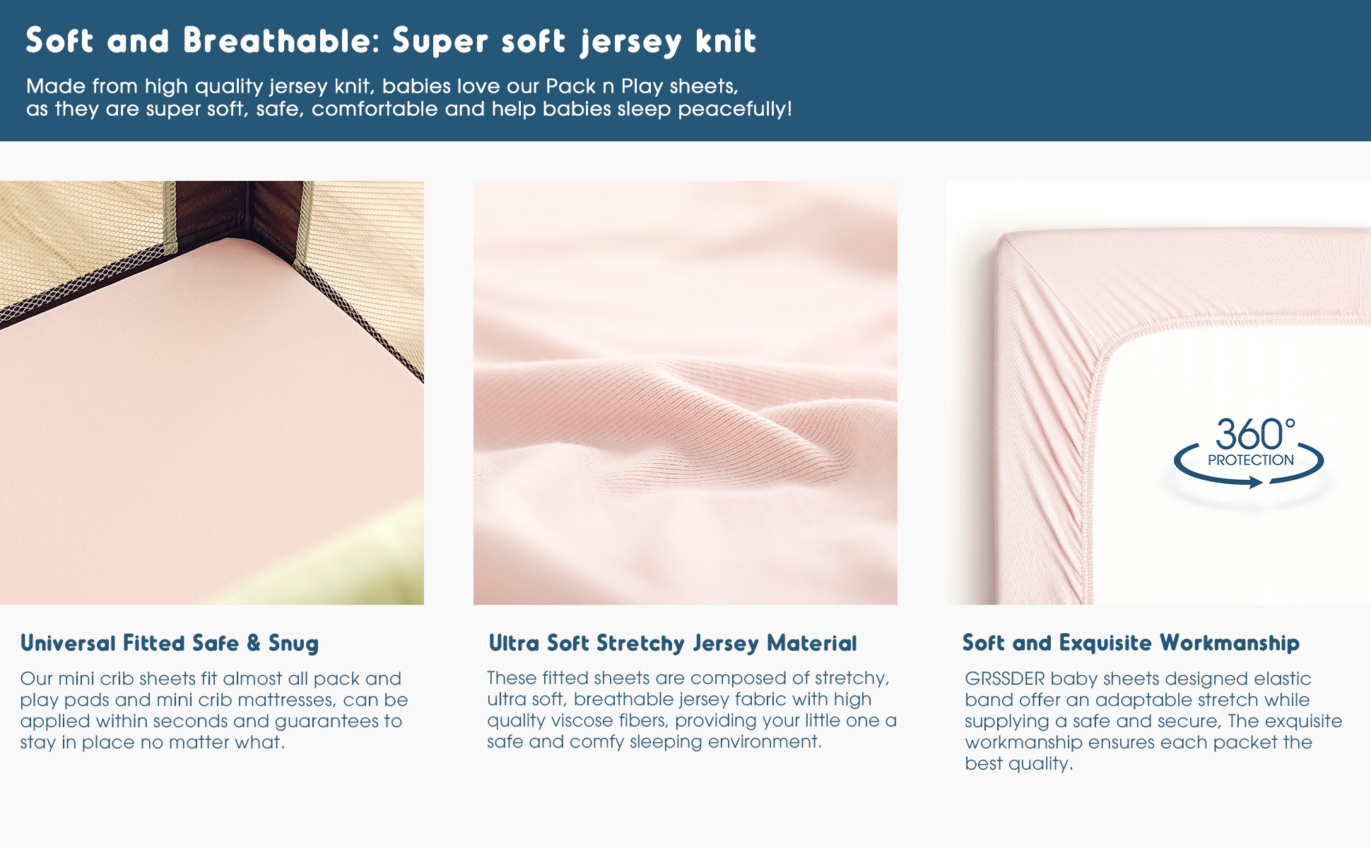 GRSSDER Mini Crib Sheets Fitted, Pack and Play Sheets 3 Pack, Ultra Soft Stretchy Pack N Play Sheets, Universal Fit for Playard Mattress, Jersey Crib Sheets Neutral for Boys and Girls
