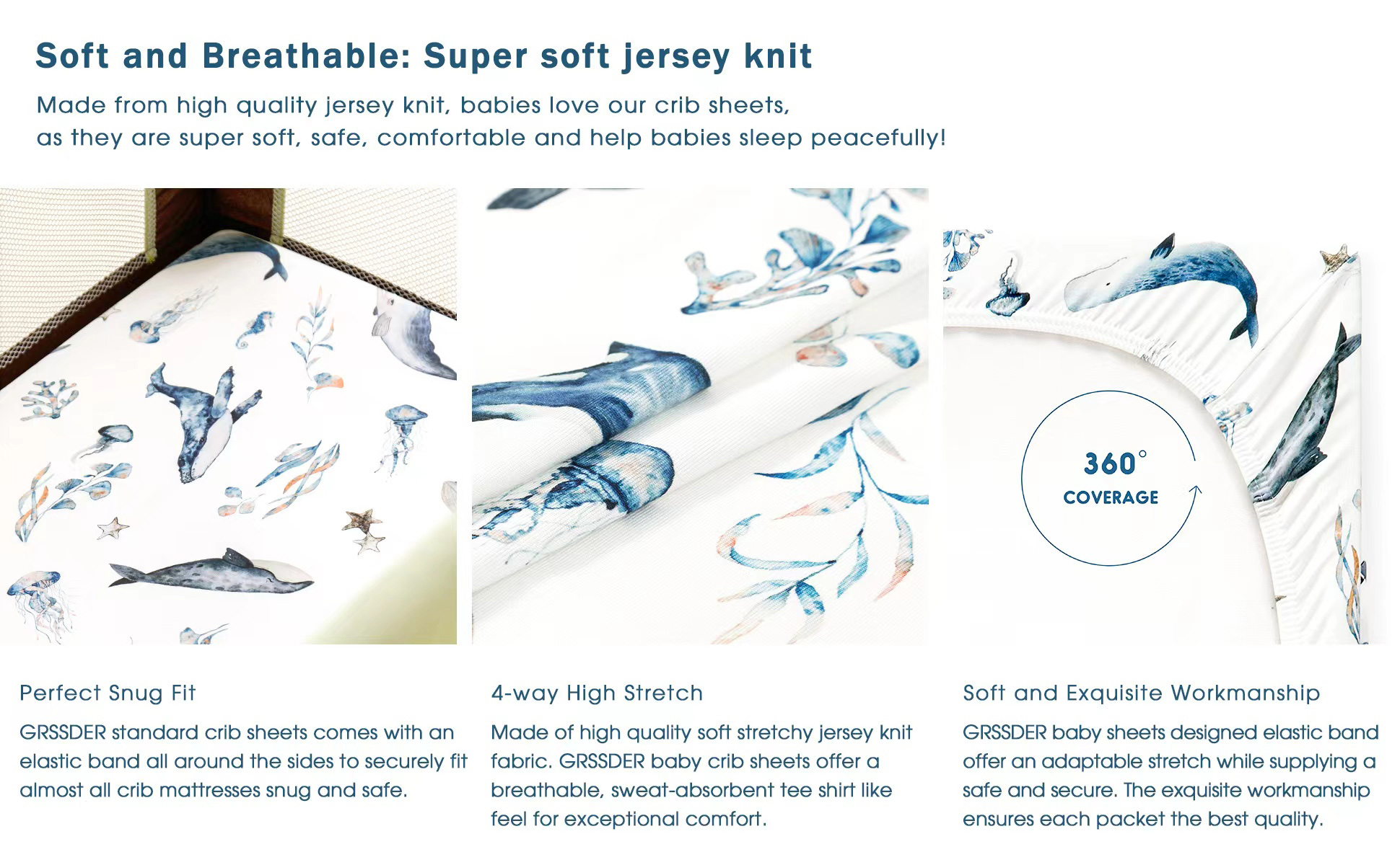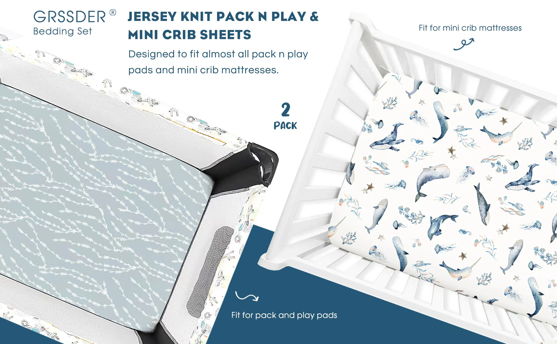 GRSSDER Stretchy Ultra Soft Jersey Knit Fitted Pack n Play Sheets Set 2 Pack, Portable/Mini Crib Mattresses for Boys and Girls, Universal Fit for Pack N Plays Pads Safe and Snug