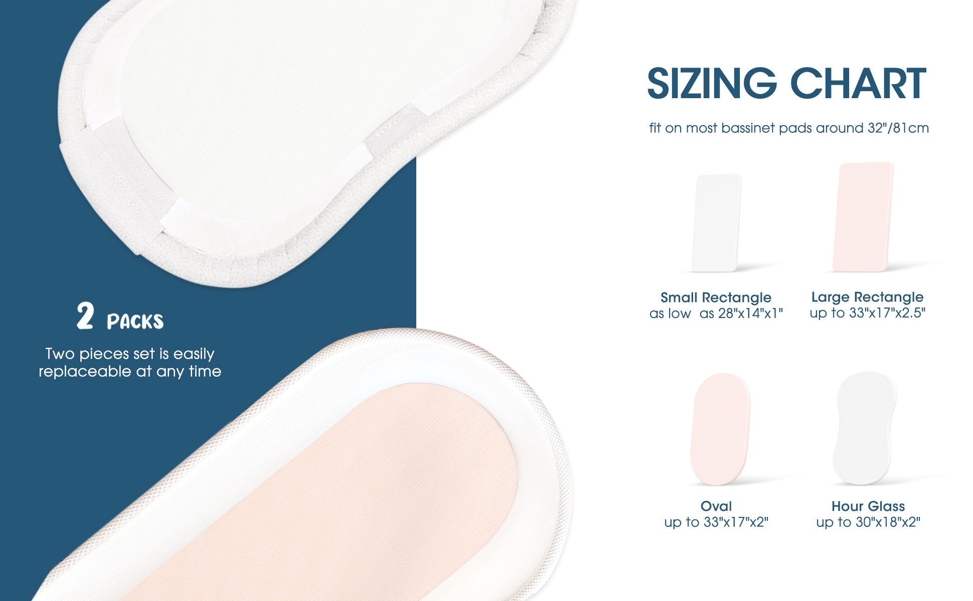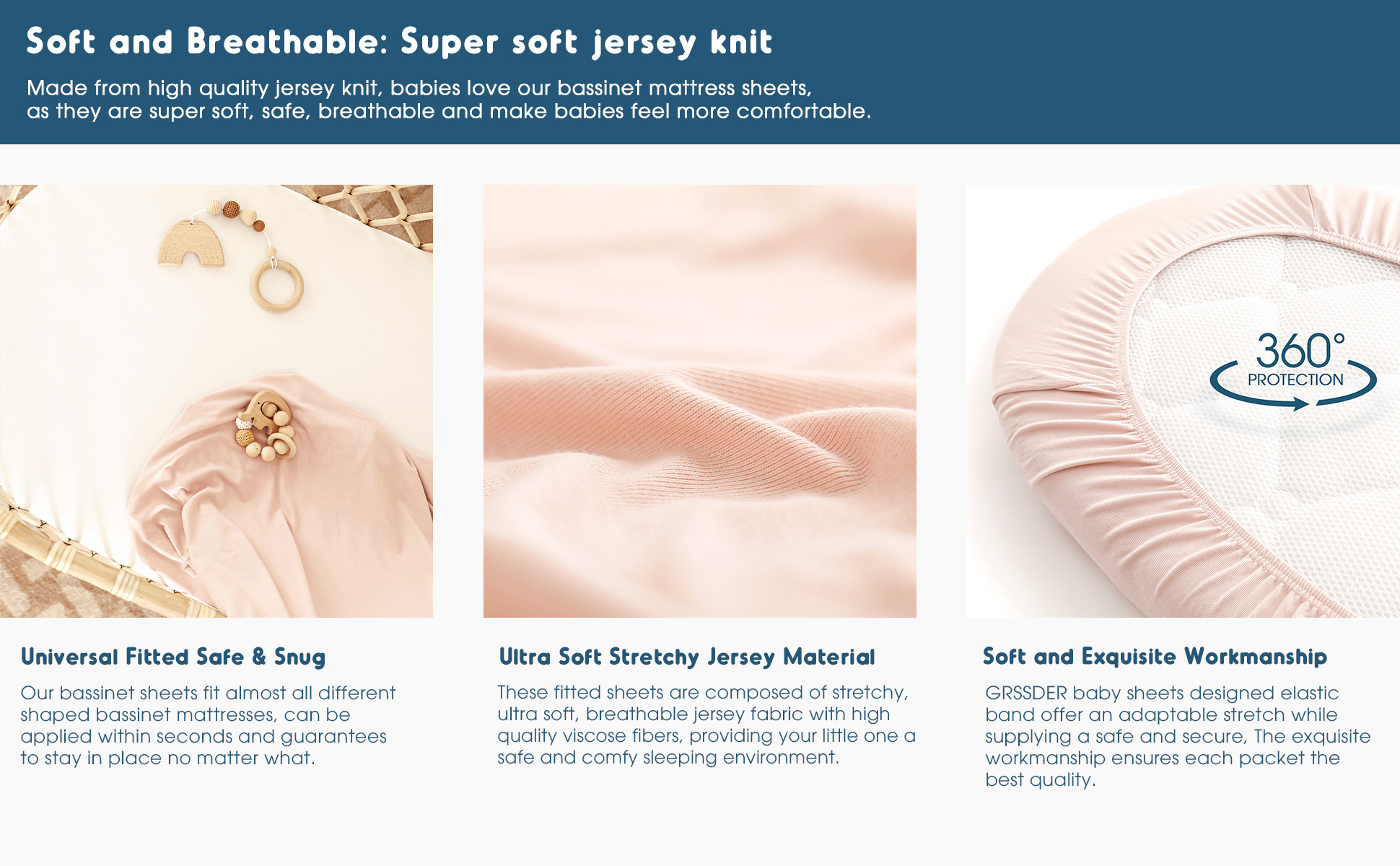 GRSSDER Stretchy Ultra Soft Fitted Bassinet Sheet 2 Pack, Universal Fit for Bassinets Baby Cradle Moses Basket Oval Rectangle Mattress Safe and Snug, Jersey Bassinet Sheets for Girls