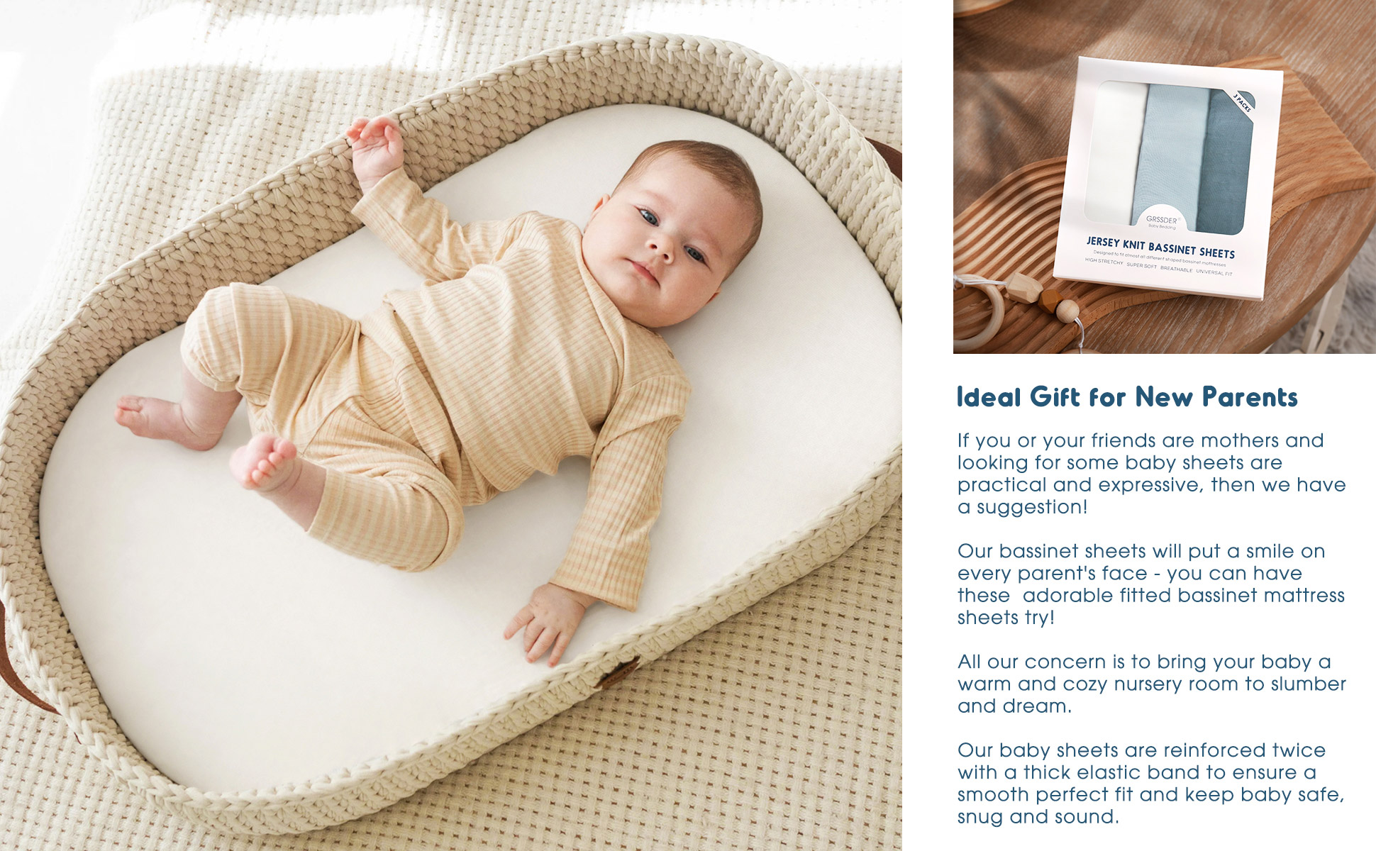 GRSSDER Stretchy Ultra Soft Fitted Bassinet Sheet Set 3 Pack, Universal Fit for Bassinets Baby Cradle Moses Basket Oval Rectangle Mattress Safe and Snug