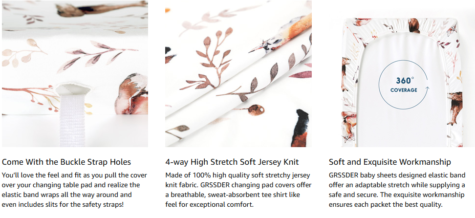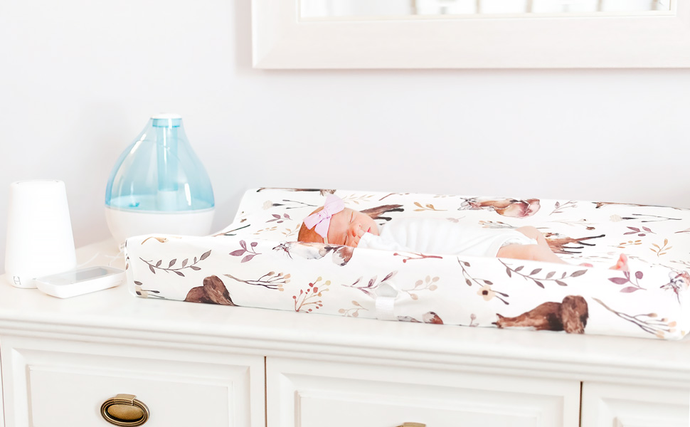 GRSSDER Stretch Ultra Soft Jersey Knit Changing Pad Cover Set 2 Pack, Change Table Pad Covers Fit 32"/34" x 16" Pads Safe and Snug, Cute Diaper Change Table Sheets for Girls, Fox Pattern for Baby