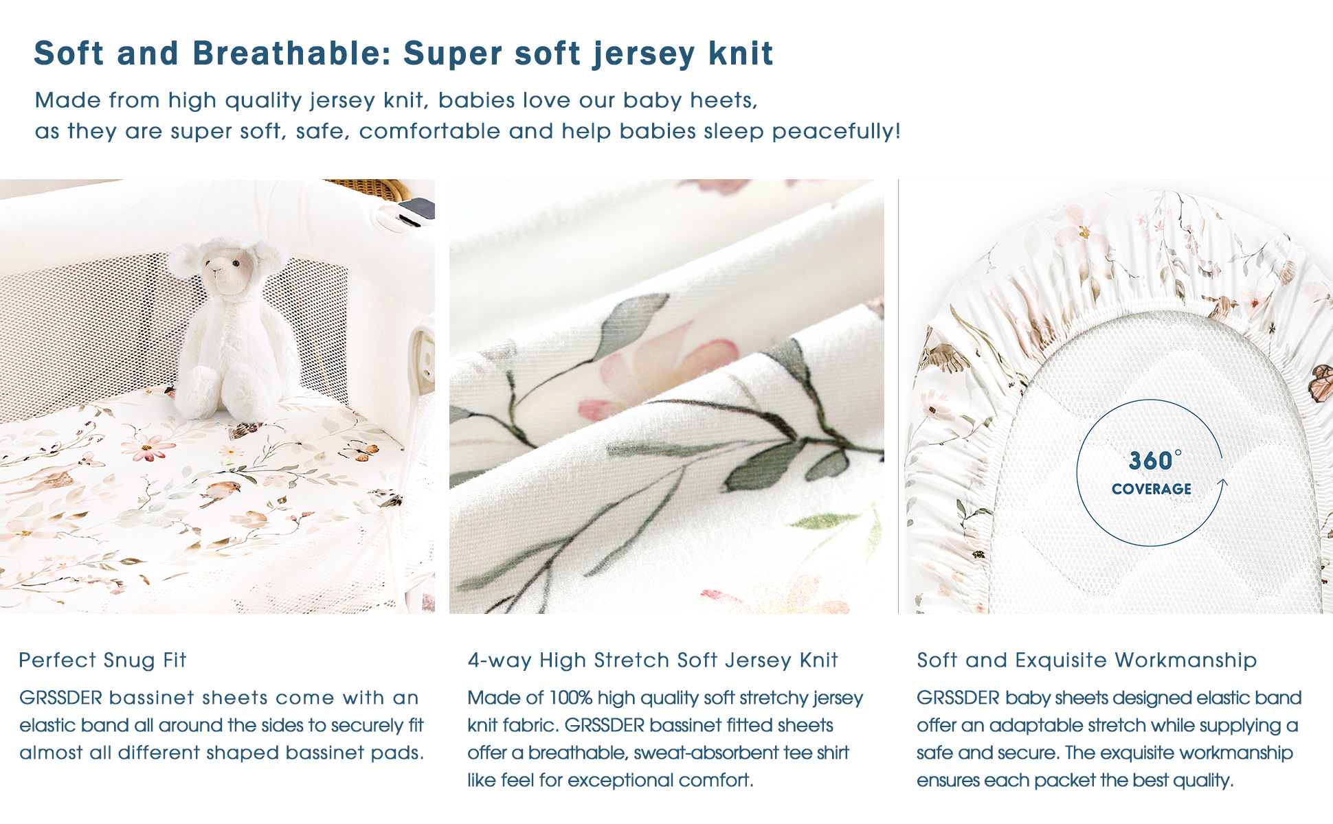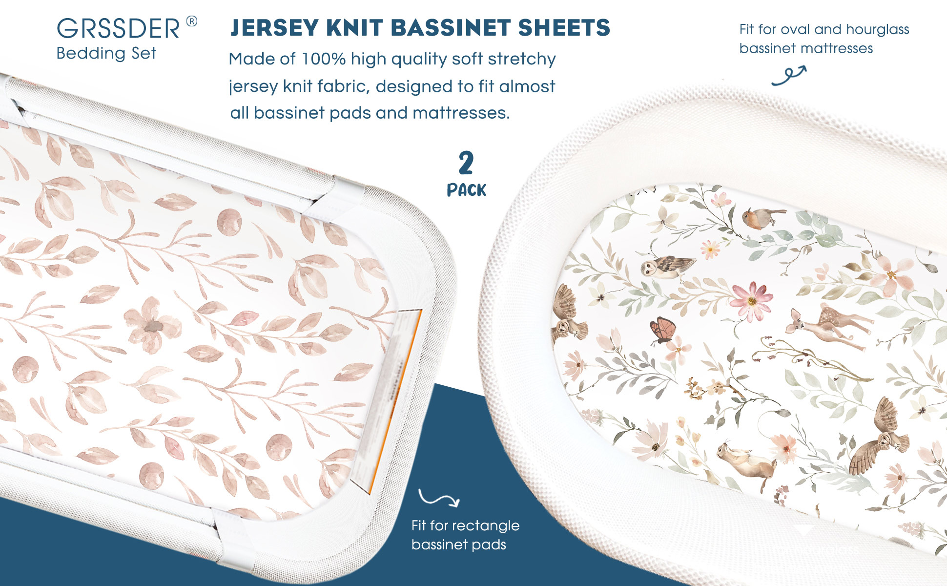 Stretchy Ultra Soft Fitted Bassinet Sheet Set 2 Pack, Universal Fit for Bassinets Baby Cradle Moses Basket Oval Rectangle Mattress Safe and Snug